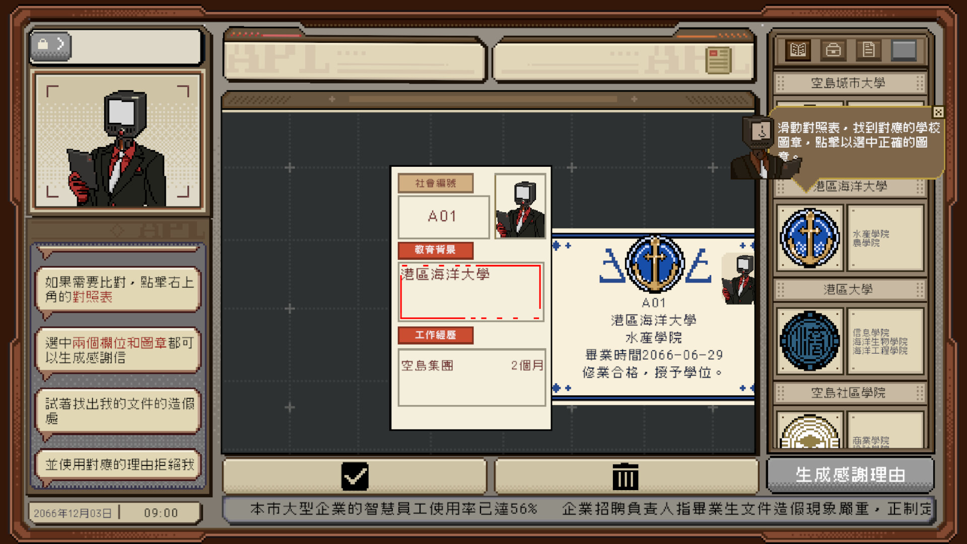 《感謝你的投遞》是一款面試游戲。經過15輪的面試,你與崗位不太匹配。你被調劑為初級面試官,根據公司要求篩選候選人的簡歷,並發出合適的感謝信。