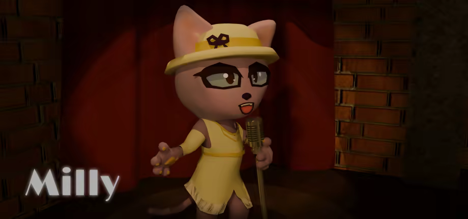 A purple tabby with a sharp suit and a sharper mind. Some call him a detective, others call him a fool chasing ghosts. Regardless, he’s caught up in this twisted game, and those cards are the last lead he’s got.