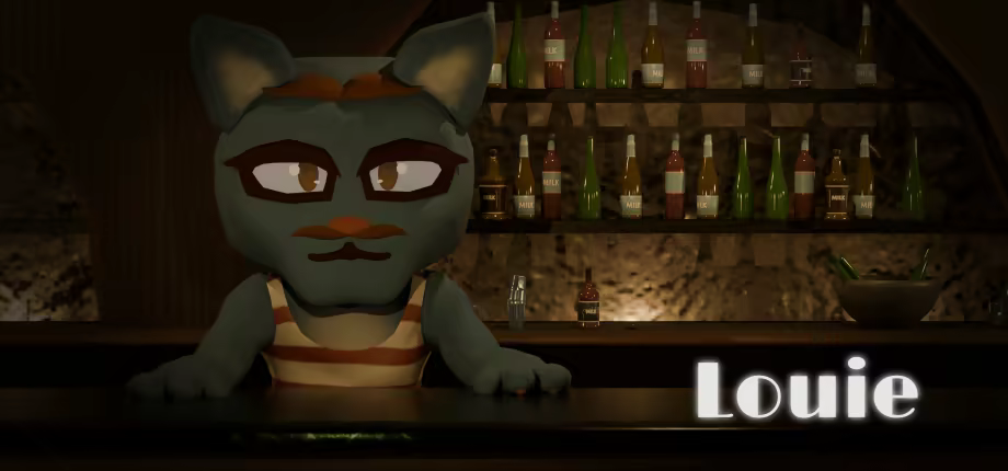 Blue-furred, barrel-chested, and built like iron. He looks like he could hoist the bar without breakin' a sweat (and he probably did back in his circus days). Now he’s the muscle keeping this joint in line. A cat of few words, he just grins and plays his cards. Maybe he loves the danger. Or maybe it’s the only life he knows.