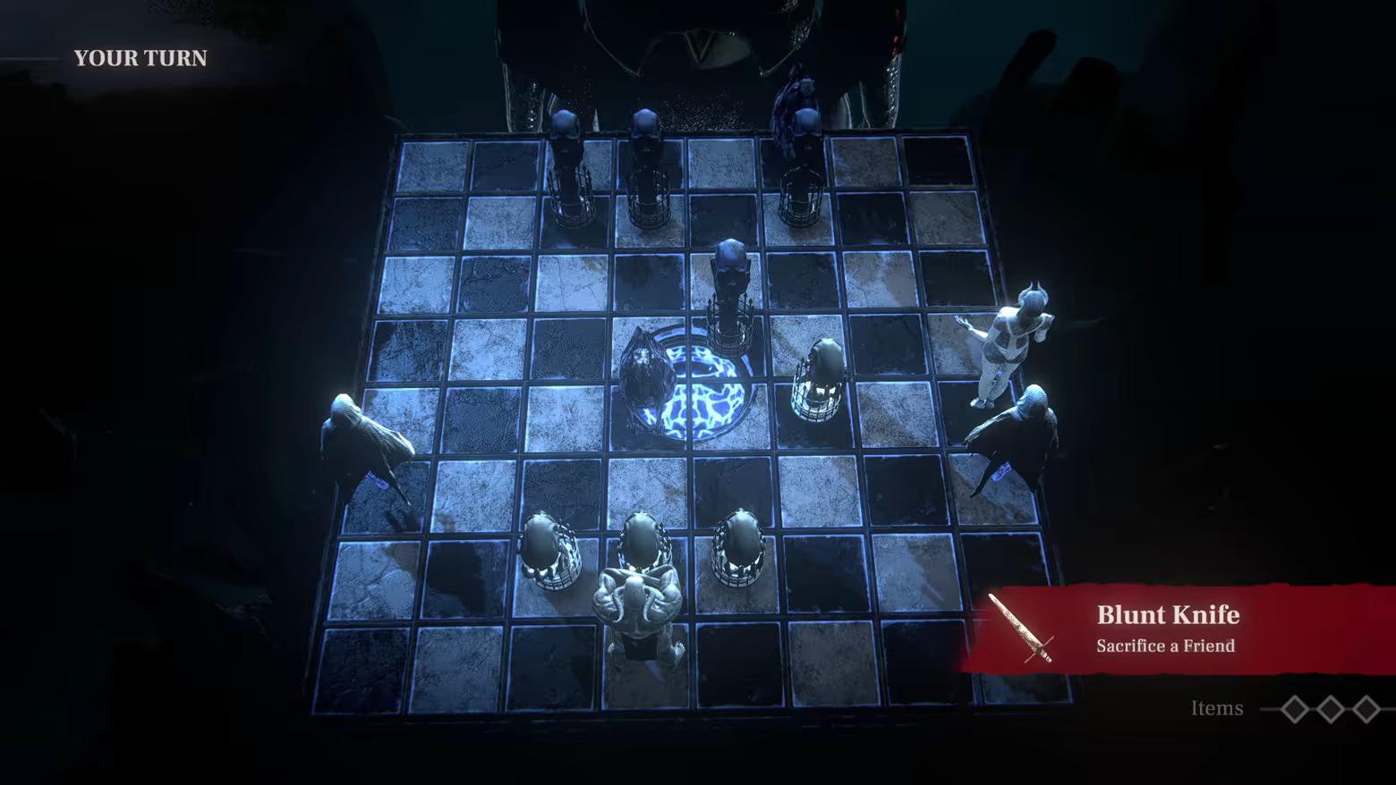 Victory demands a sacrifice. Give up your own pieces to gain powerful items.