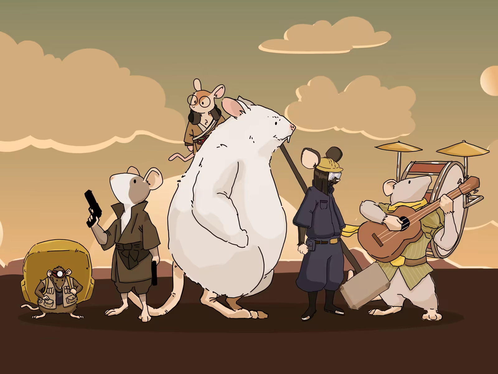 Dive into a tale of adventure and comical hijinks! Join Strik and his pals, a band of music-loving critters, as they journey through a dystopian wasteland controlled by a rhythm-obsessed hive mind.