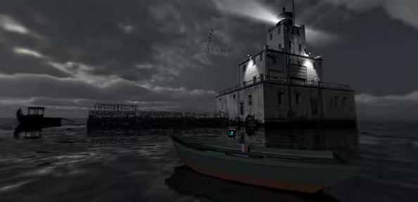 Ultra-realistic ocean environment | Animated lighthouse, ships and birds | Cinema screen water reflection