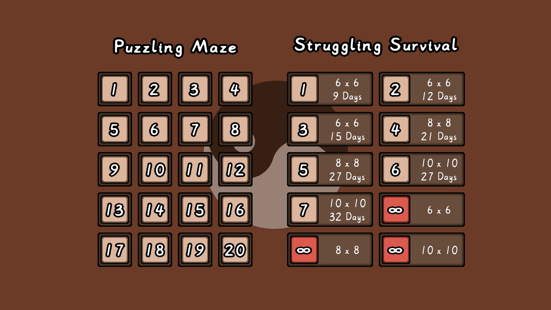 In this mode, you need to survive as many steps as you can on the randomly generated board, while every move you make, fewer blocks become available. There is no exit, so death is certain, but the time is not, all you can do is help the monkey king live longer.