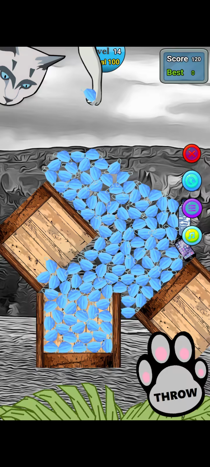 The fixed cat's paw is located in the bottom right-hand corner and, when clicked, releases a mask that falls where you wish. Each situation has its own technique. You can send several in a second to make weight in the dumpster and unlock the hooves in two wastes, or use it sparingly to pile up the masks with the utmost precision.