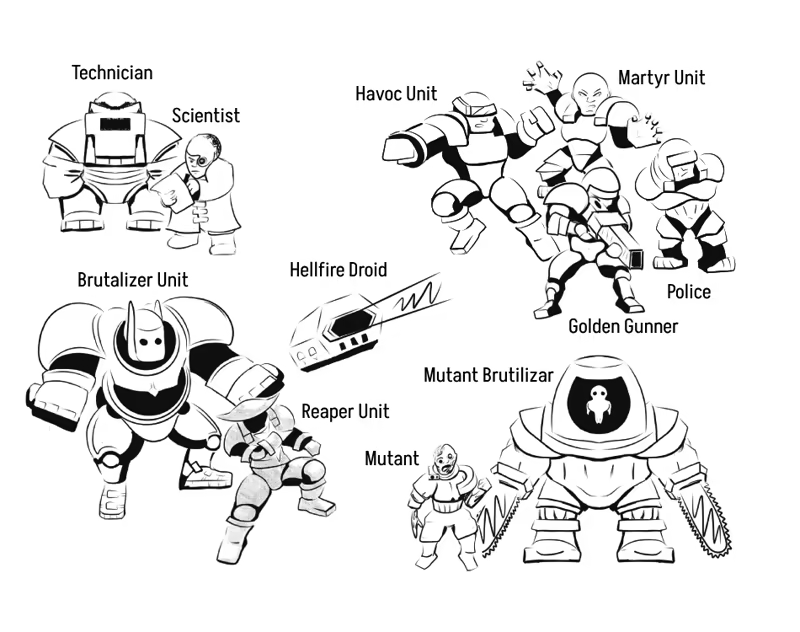 Pioneered by CRUSH, Tribulation transforms human suffering into fuel for war machines and enhanced soldiers. Victims’ torsos, vital organs, and brains are fused with machines designed to extract raw emotion.