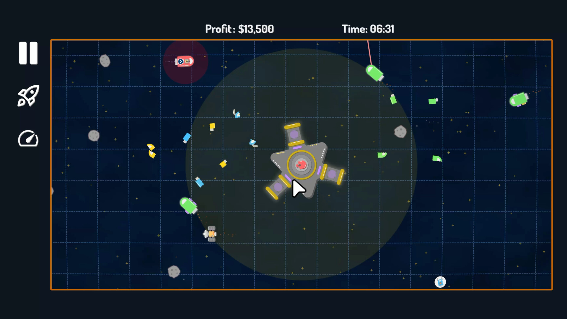 Merchants of the Stars is a traffic-control incremental game where you click and drag cargo ships, guiding them to docks to unload. With the proceeds, purchase upgrades to enhance your profits, unlock new ship types, build your station, and expand your merchant empire. Try to win capitalism as quickly as possible!