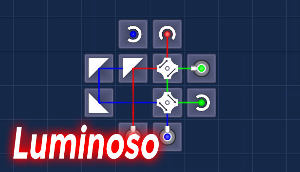 Luminoso is a puzzle game with laser beams. The goal of each puzzle is to make all laser beams hit the receiver pieces of their respective color.