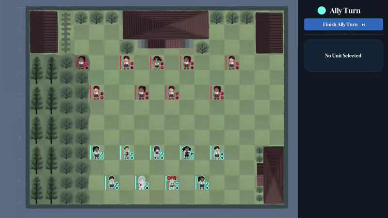 This game includes a 2D turn-based trategy game that’s inspired by chess and classic SRPGs. You will control different ally units (or ‘chess pieces’) to defeat your enemies. Different chess pieces have different movement patterns, weapons and skills that enrich the gameplay.