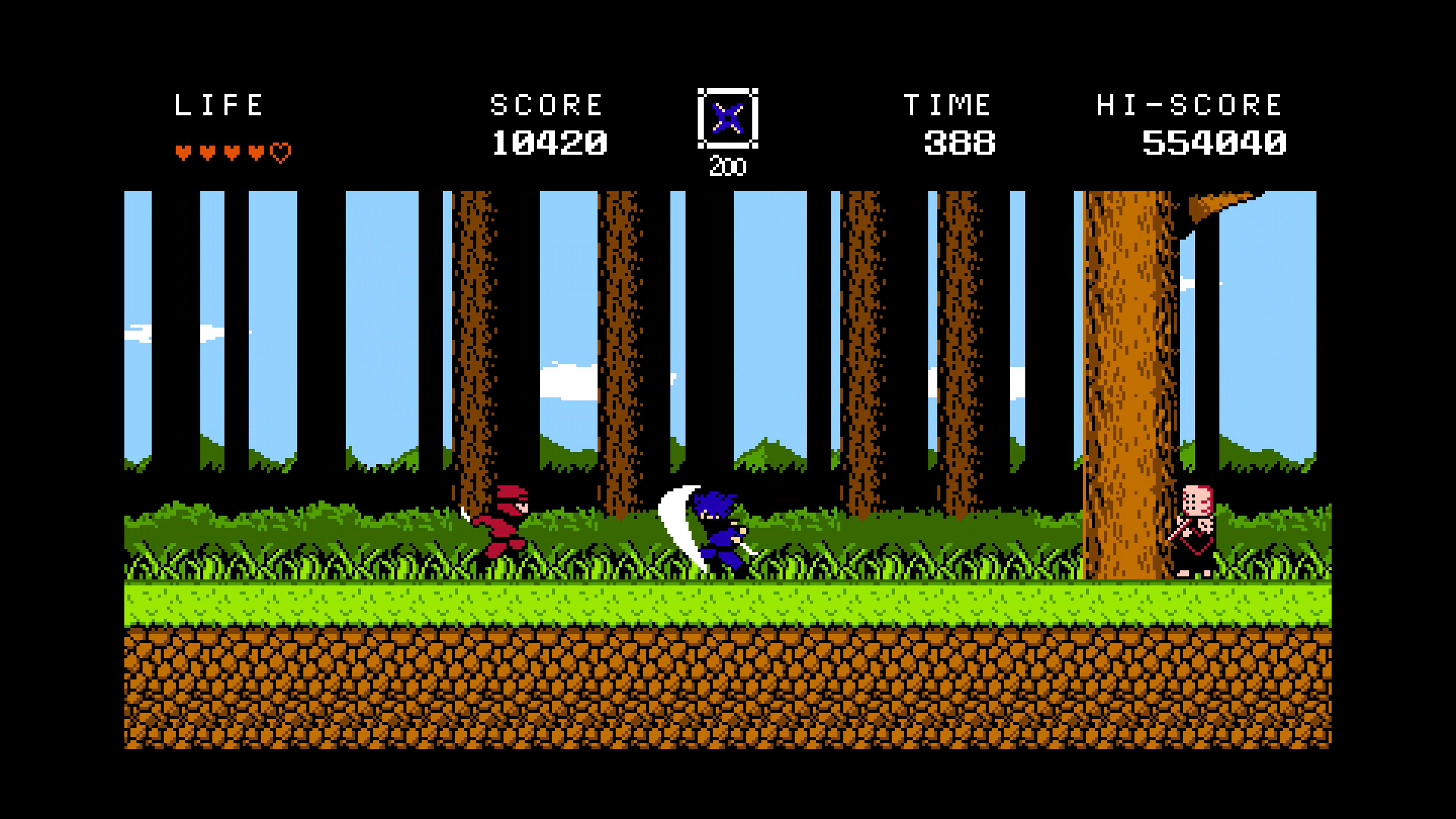 A unique ninja action game that's easy to clear but hard to master—featuring huge jumps inspired by The Legend of Kage and a combo-based scoring system where you spend points to unleash powerful skills.