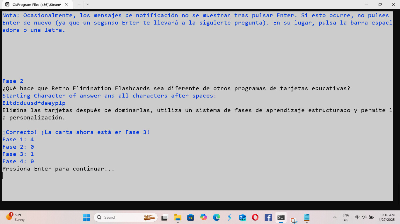 ¡Bienvenido a Retro Elimination Flashcards 2!