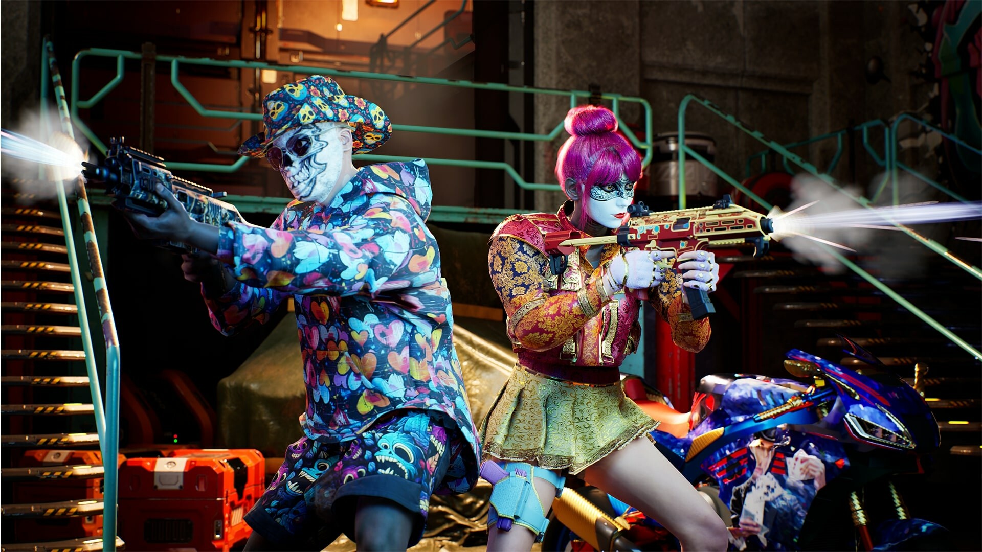 Outfit yourself fast: ballistic helmet, armored vest, tactical backpack. Equip dual rifles, sidearms, grenades, smoke bombs of every color, and maybe even a combat-ready electric guitar. Style is welcome, but survival comes first.