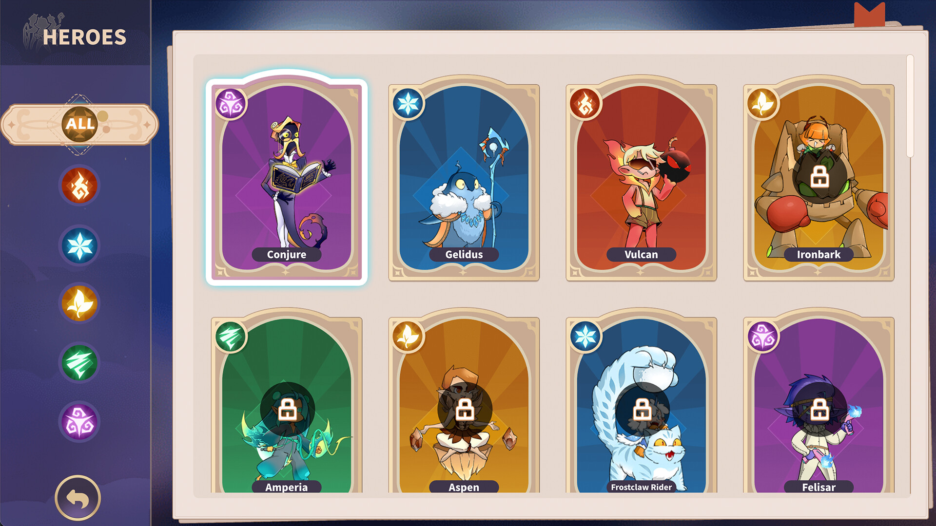 ∙ Hero Roster: Unlock over 10 playable heroes, each with a unique skill system and 3 tiers of cosmetic skins.