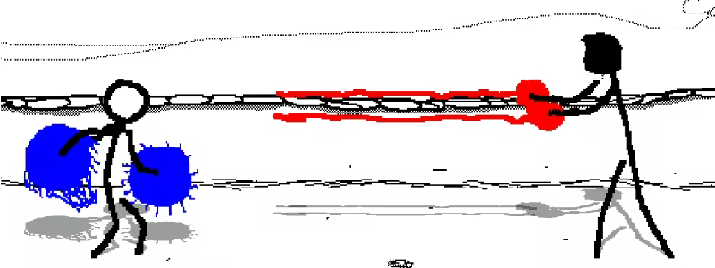 A 2D fighting game were a weird cast of stickmen fight each other in chaotic and funny 1 vs. 1 battles, using very extravagant techniques.