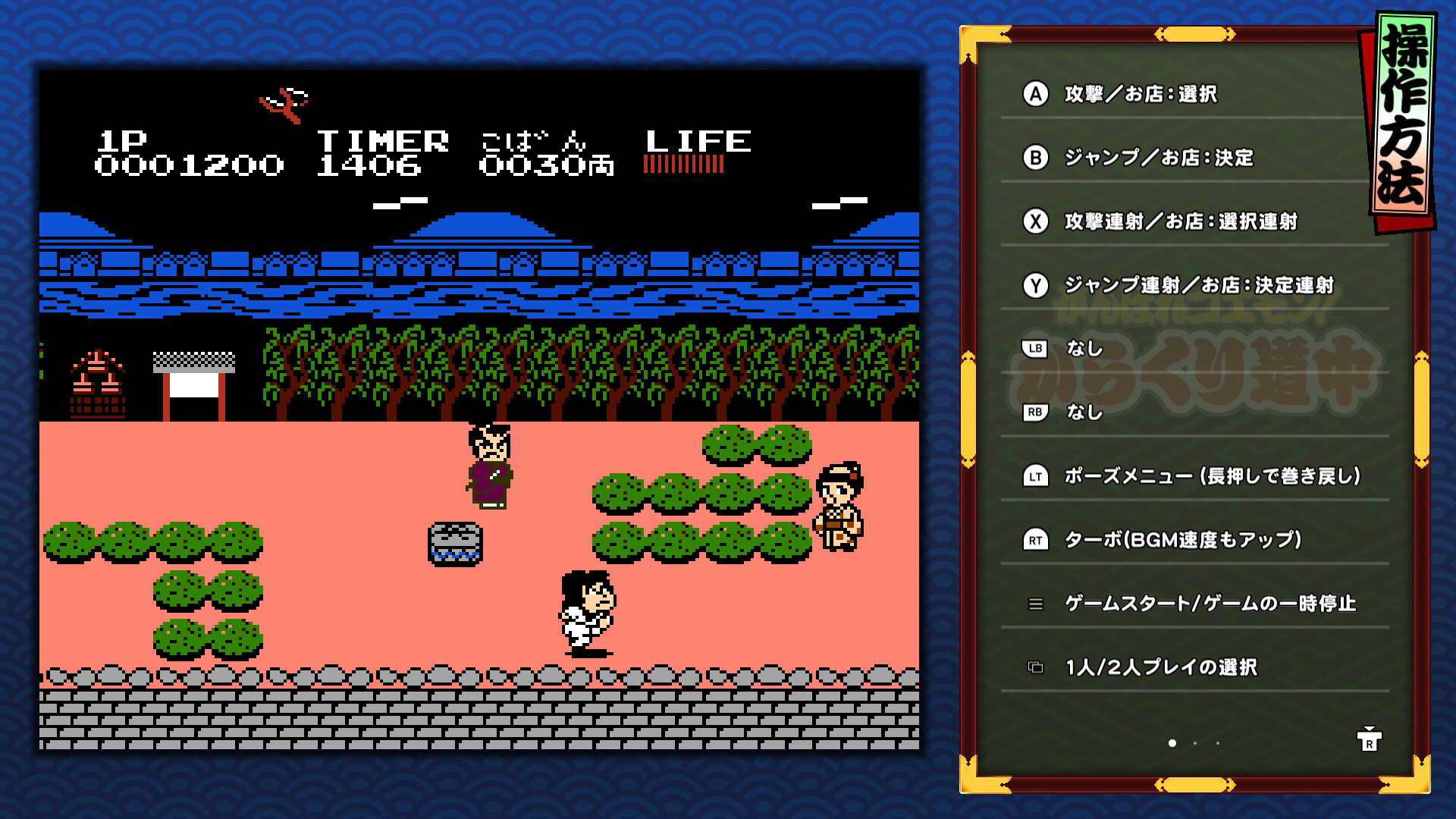 「からくり道中」「ゆき姫救出絵巻」「奇天烈将軍マッギネス」などシリーズ13作品を収録したコレクションが登場! 巻き戻し機能、クイックセーブ・ロードはもちろん、ミュージックモード、当時の取扱説明書を閲覧できるモードも搭載された本作で、懐かしのゴエモンワールドをお楽しみください