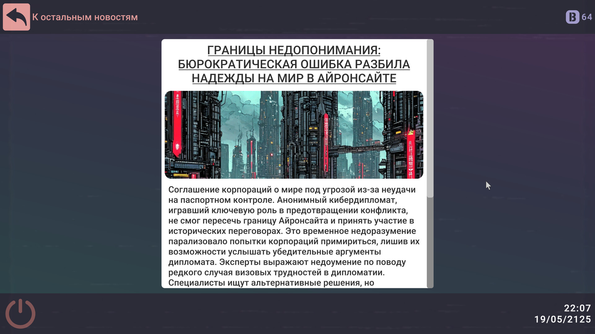 Интерактивная драма в мире киберпанка, где ты проживёшь жизнь пограничника в жестоком будущем, полном тирании, манипуляций и выживания. Проверяй документы, пропускай или отказывай людям, заводи отношения и принимай участие во множестве нелинейных историй.