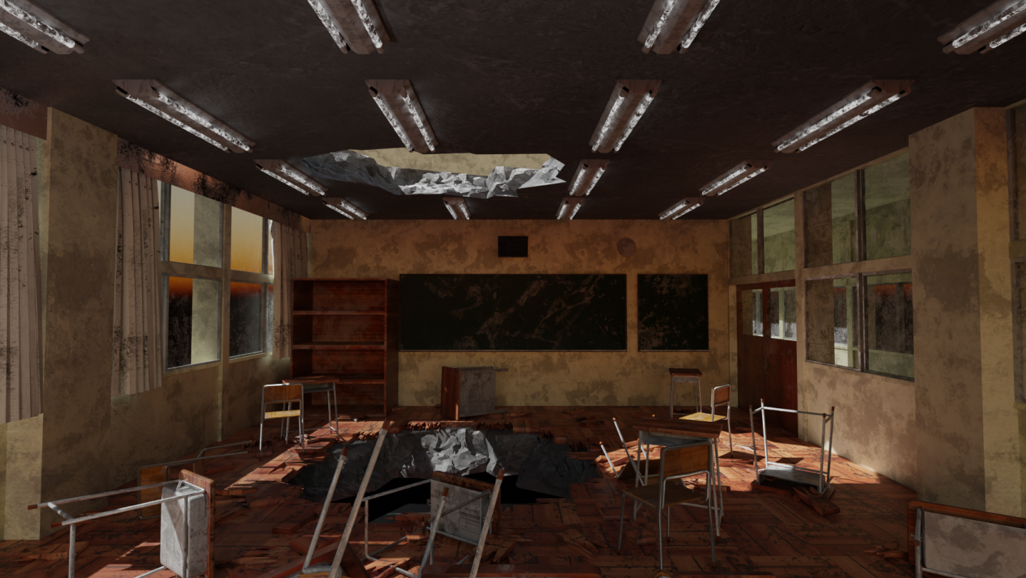 In a desolate future, a survival FPS unfolds within the ruins of a Japanese school.