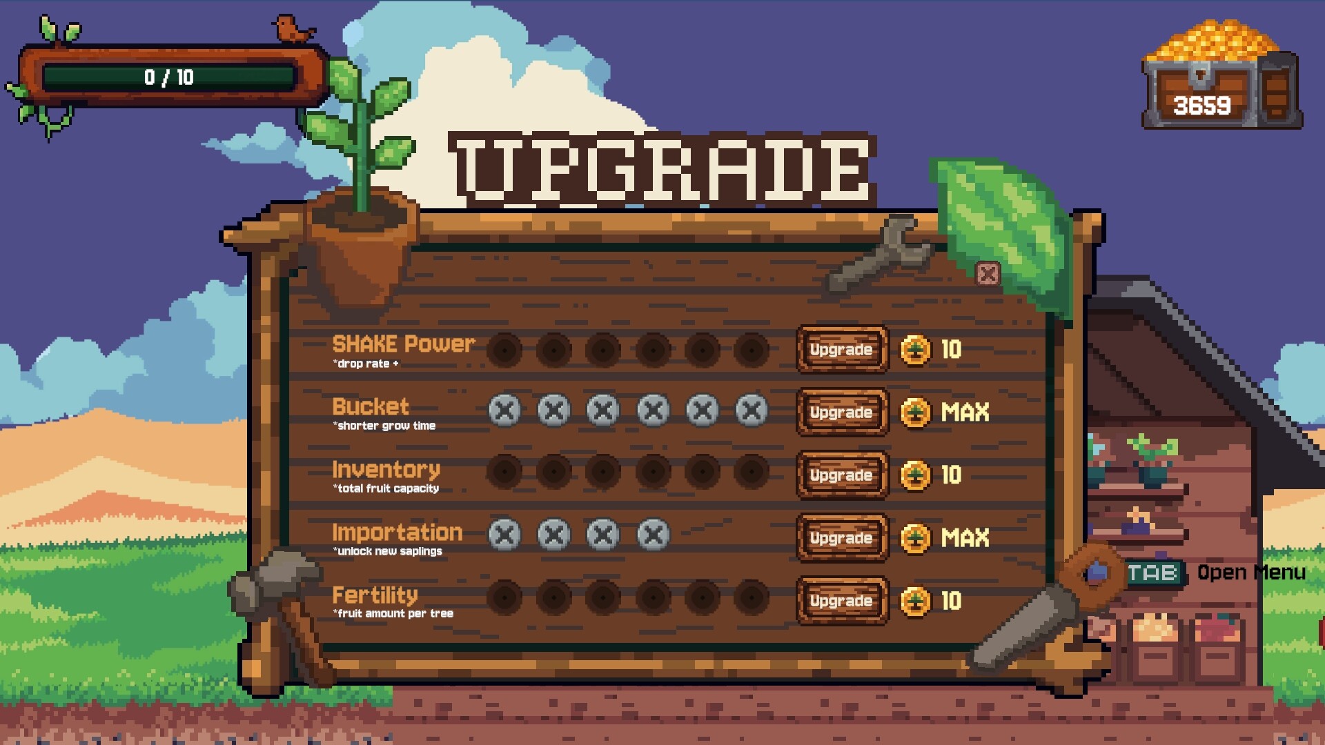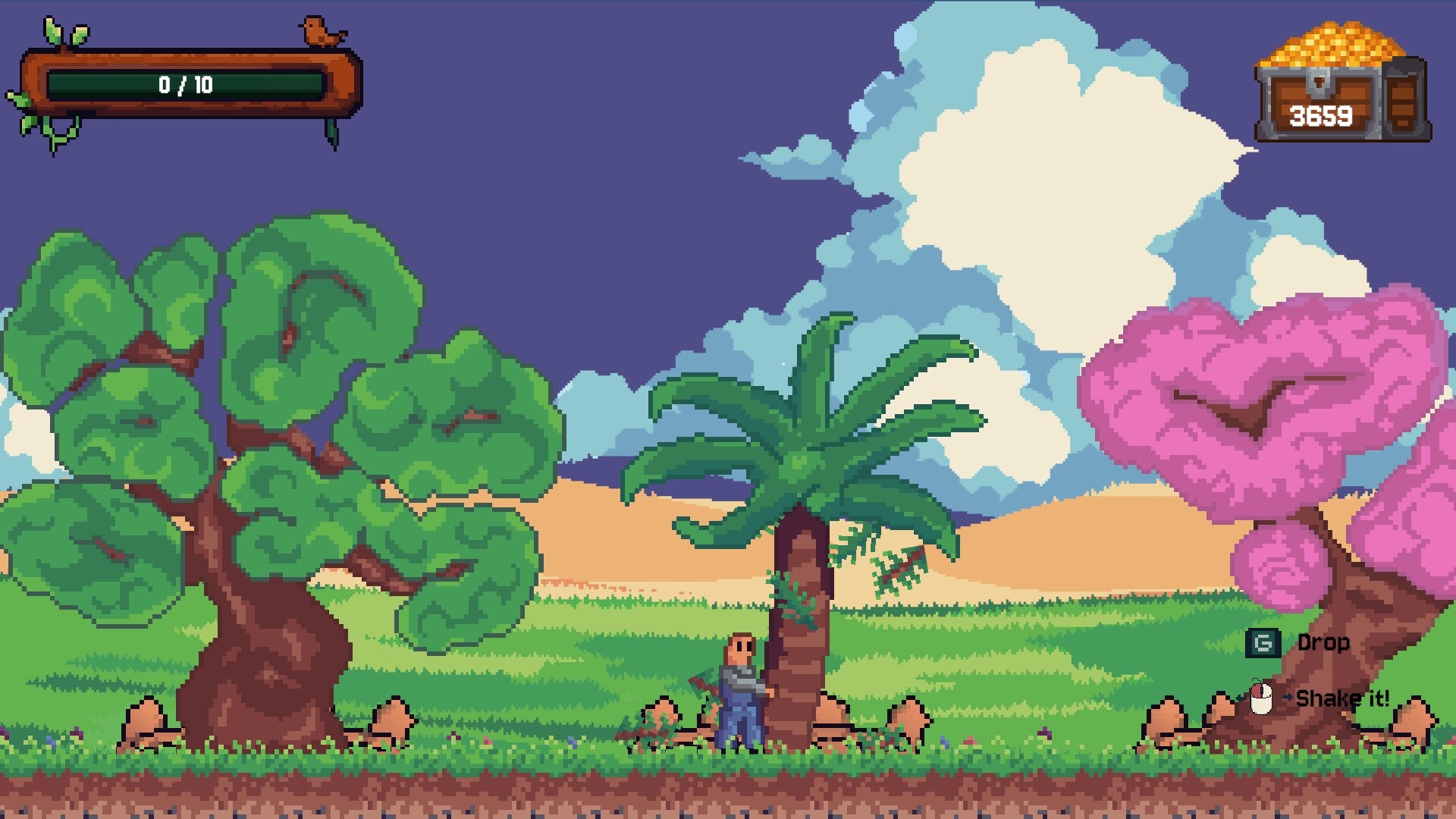 Grow your orchard by shaking trees! Join Co, a friendly adventurer with a can-do spirit, and plant unique saplings for bountiful fruit. Collect coins, invest in upgrades, and harvest in a charming 2D style!