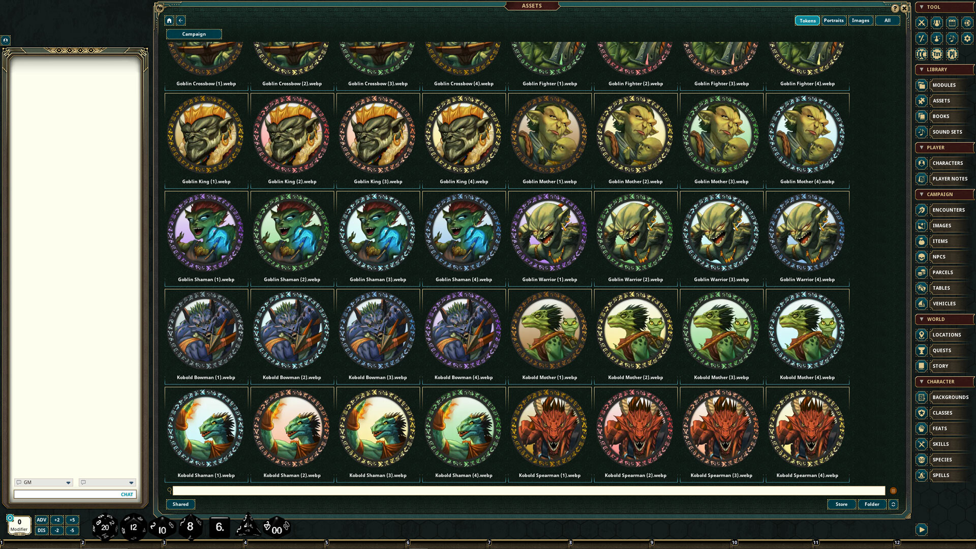 Assemble a tribal army with 24 beautifully drawn tokens. Whether you need imagery for Goblins, Gnolls, Lizardmen or even some Kobolds, we've got you covered. Additionally, each token has four color variants so you can find just the right style for your campaign.