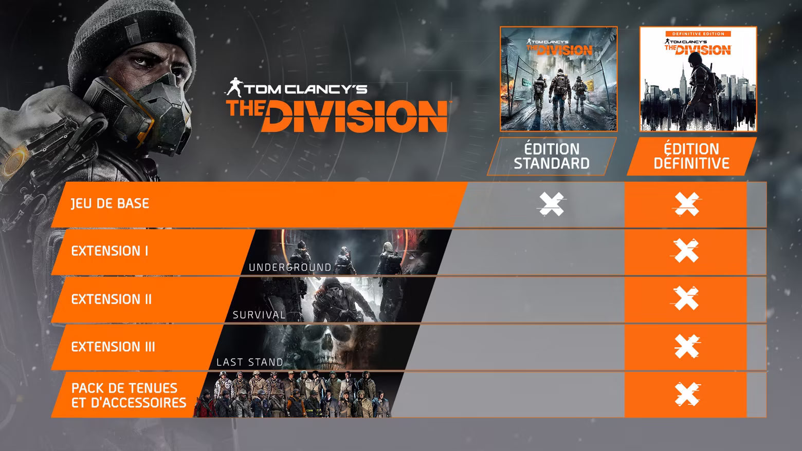 Vivez toute l'expérience The Division dans cette Édition Définitive ! Le jeu de base, les trois extensions Passes saisonniers et de nombreux packs d'accessoires cosmétiques vous attendent.