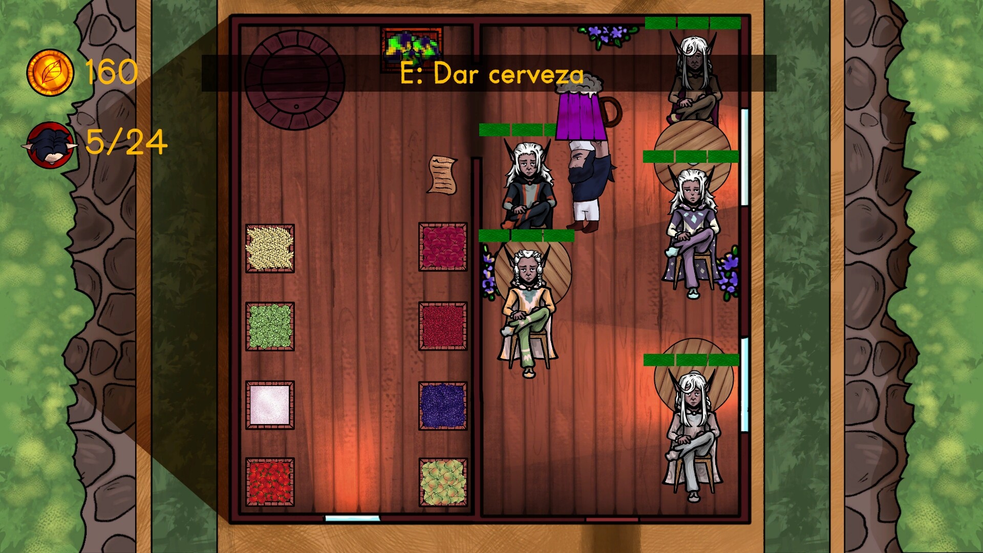 Los elfos van a decir cosas extrañas, pedir añadir azucar a cerveza, y a veces pedir otra cosa. ¡El enano tendrá que entender que bebida esperaron toda la vida!