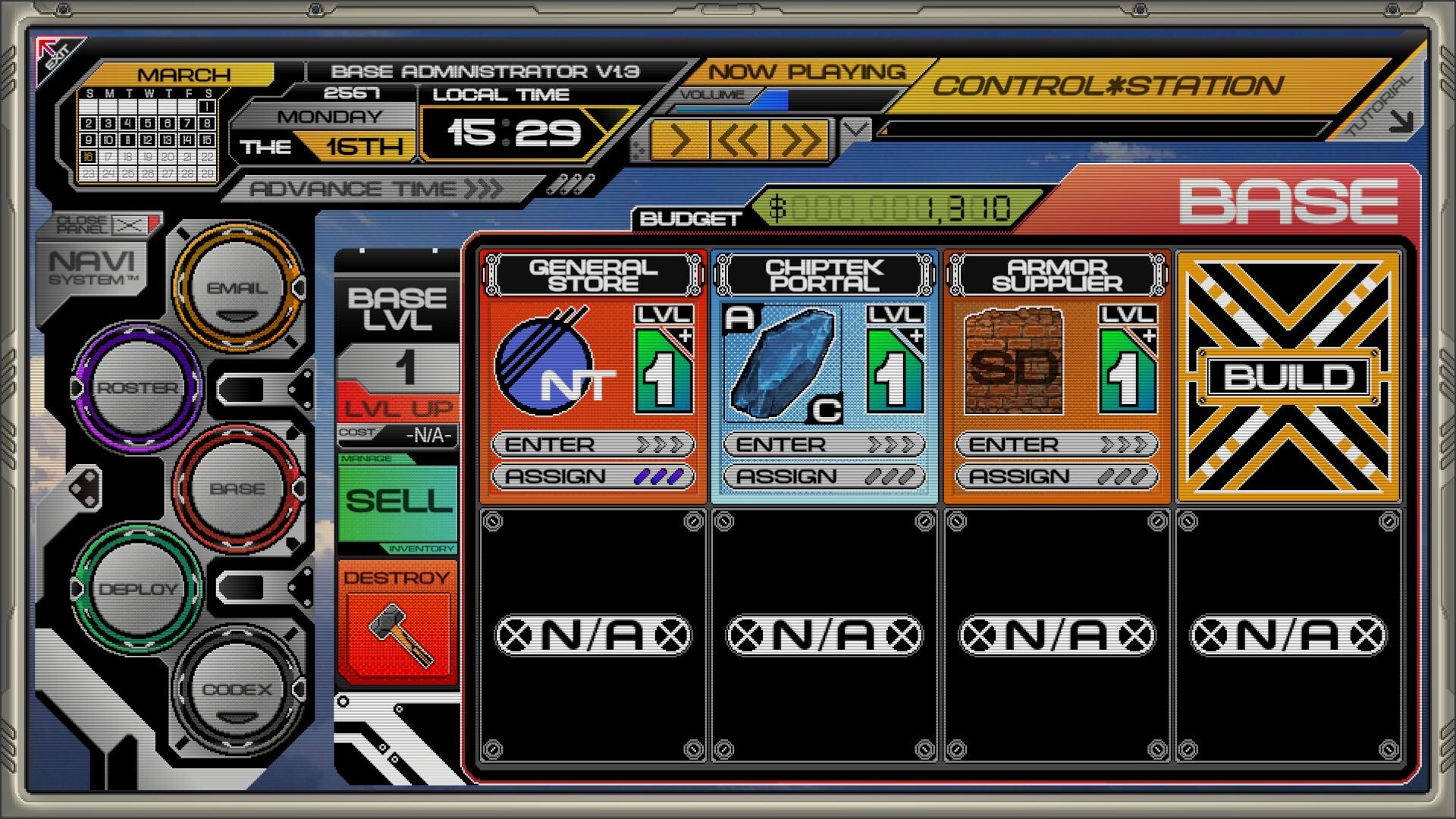 Read emails, construct shops, purchase equipment, hire Operators, and much more, all from a single screen.