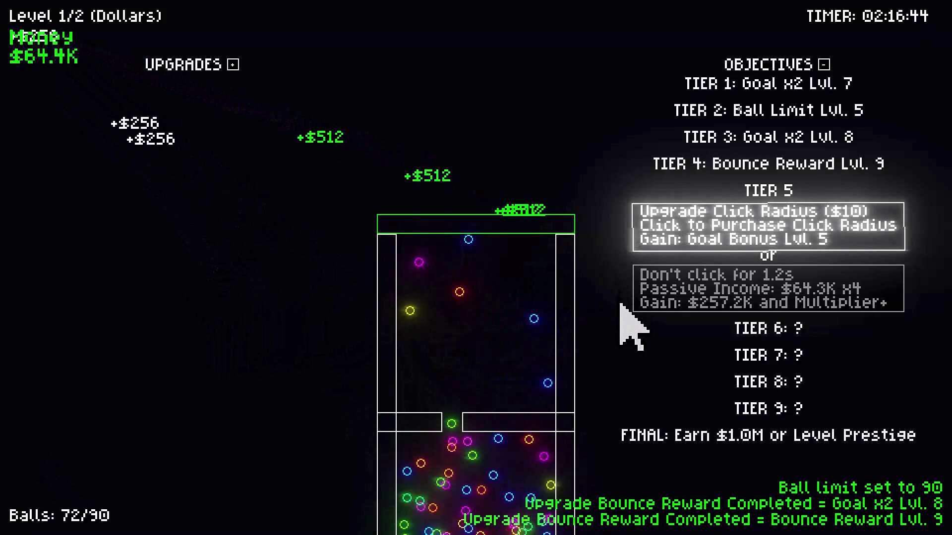 Prepare for a brutally difficult incremental game that requires fast clicking and build optimization. Click the balls to make them split and get paid when you reach the top. Miss too much and it’s game over.