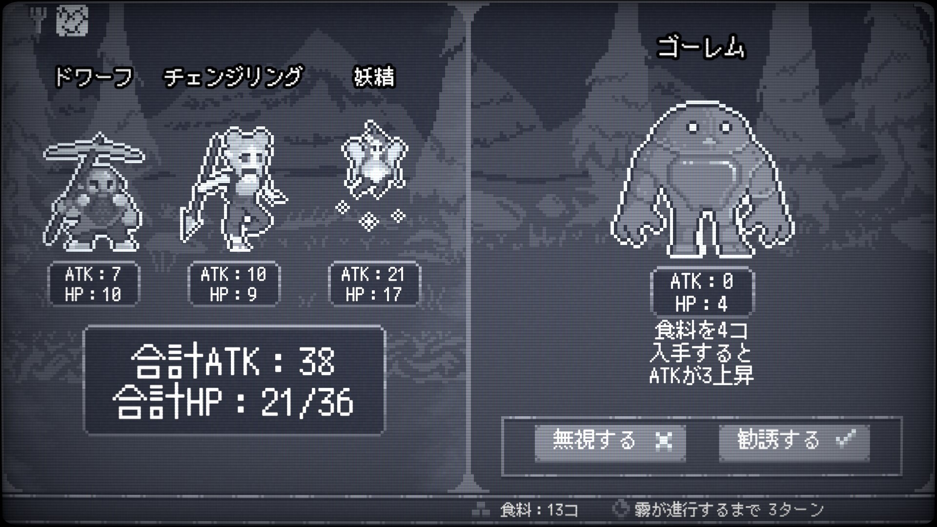 仲間を集め、最強の冒険隊を編成し、危険に満ちた魔法の森を突き進め! 森の中にはさまざまなイベントや強敵、謎の遺跡が待ち受ける。迫りくる魔法の霧をかわしながら、森の深部を目指そう。冒険隊は生き延びるのか、それとも霧にのまれてしまうのか――すべてはあなたの判断にかかっている!
