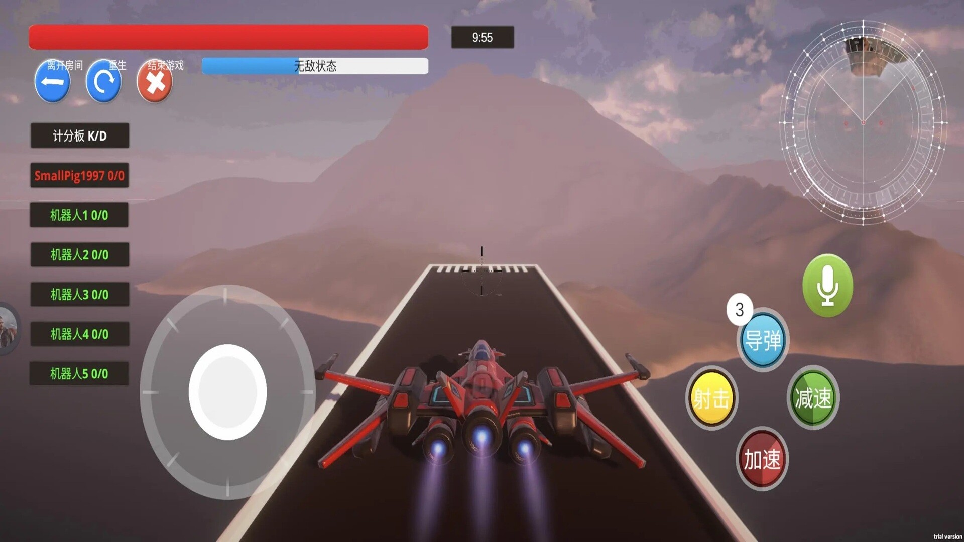 When the aircraft collides or flies out of the battlefield, it will commit suicide. After rebirth, it will have 10 seconds of invincibility. The robot AI can automatically fly and fight.