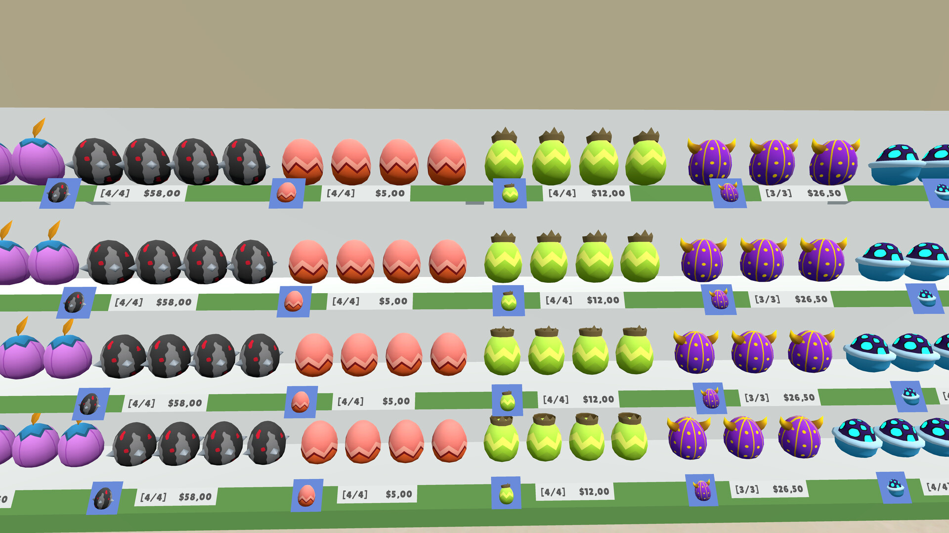 Crack open surprise eggs and discover what's inside! Find rare toys to get rich or lose it all. Every opening is a gamble, every egg a chance. Build your store, sell eggs or crack them open - no risk, no reward. If luck's on your side, fortune awaits!