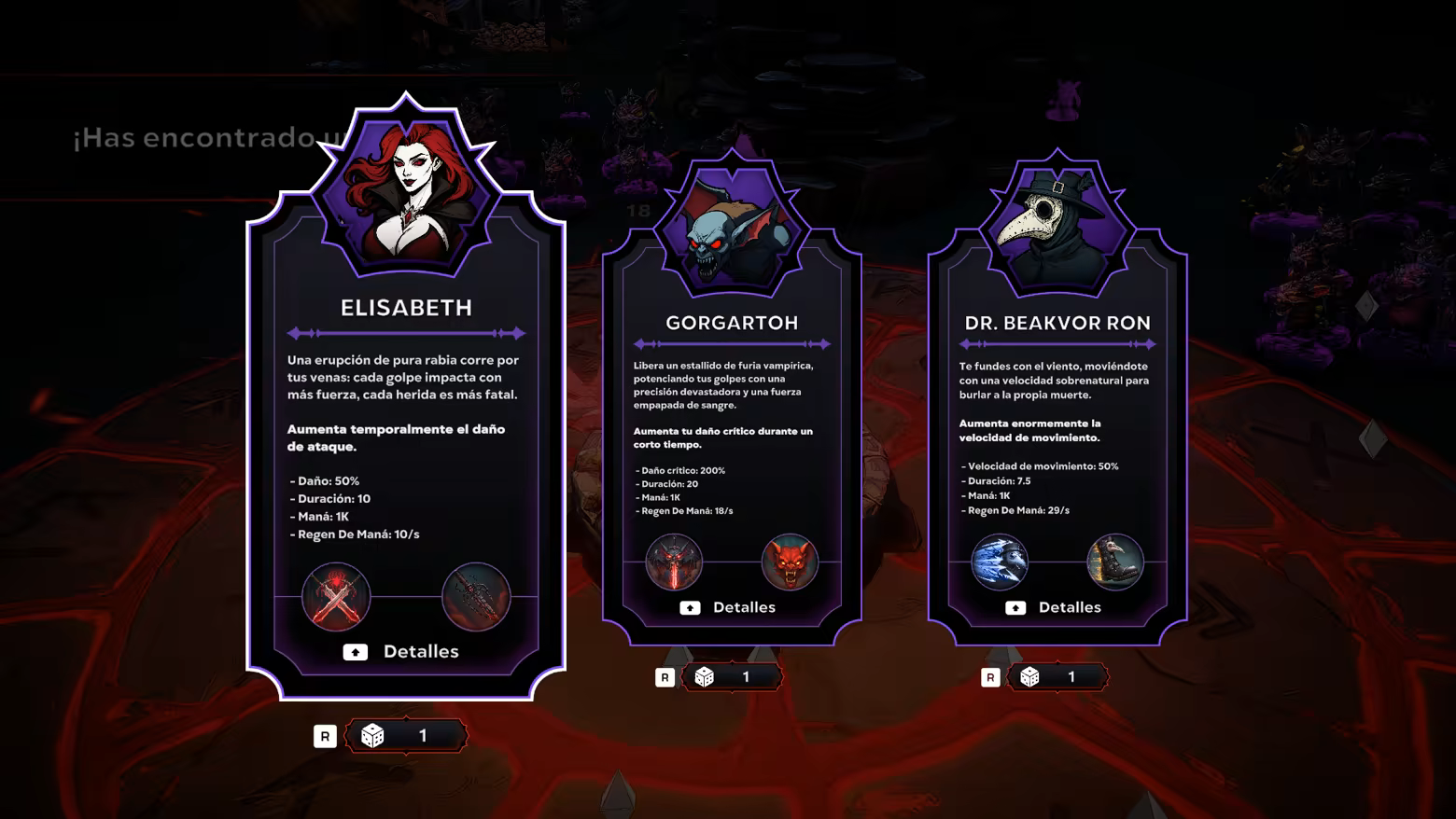 Dentro de las murallas de tu castillo, numerosos PNJ leales están listos para ayudarte en tu ascenso. Visita la Tienda de Talentos para moldear tu build, la Tienda de Objetos para prepararte para las batallas, y muchos otros aliados cuyo único propósito es reforzar tu poder. Cada partida trae nuevas mejoras — y con cada elección, forjas un legado más oscuro.
