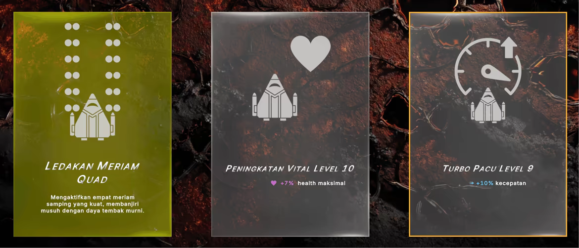 Bertempur melawan gerombolan musuh alien dan bos kolosal. Setiap pertarungan adalah ujian strategi Anda. Kumpulkan sumber daya untuk meningkatkan kapal luar angkasa Anda secara real-time. Kuasai gameplay bullet-hell pixel-perfect dan lolos dari nyaris celaka.