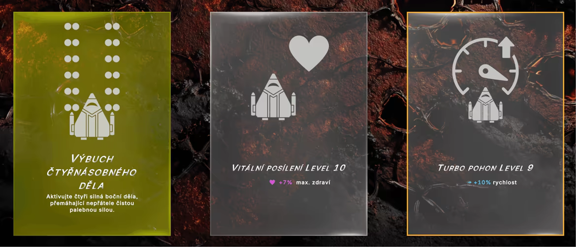 Smrt je jen začátek. Získejte trvalá vylepšení pro svou hvězdnou loď, která se přenášejí mezi průchody. Odemkněte 10 tříd lodí, každá s různými počátečními zbraněmi.