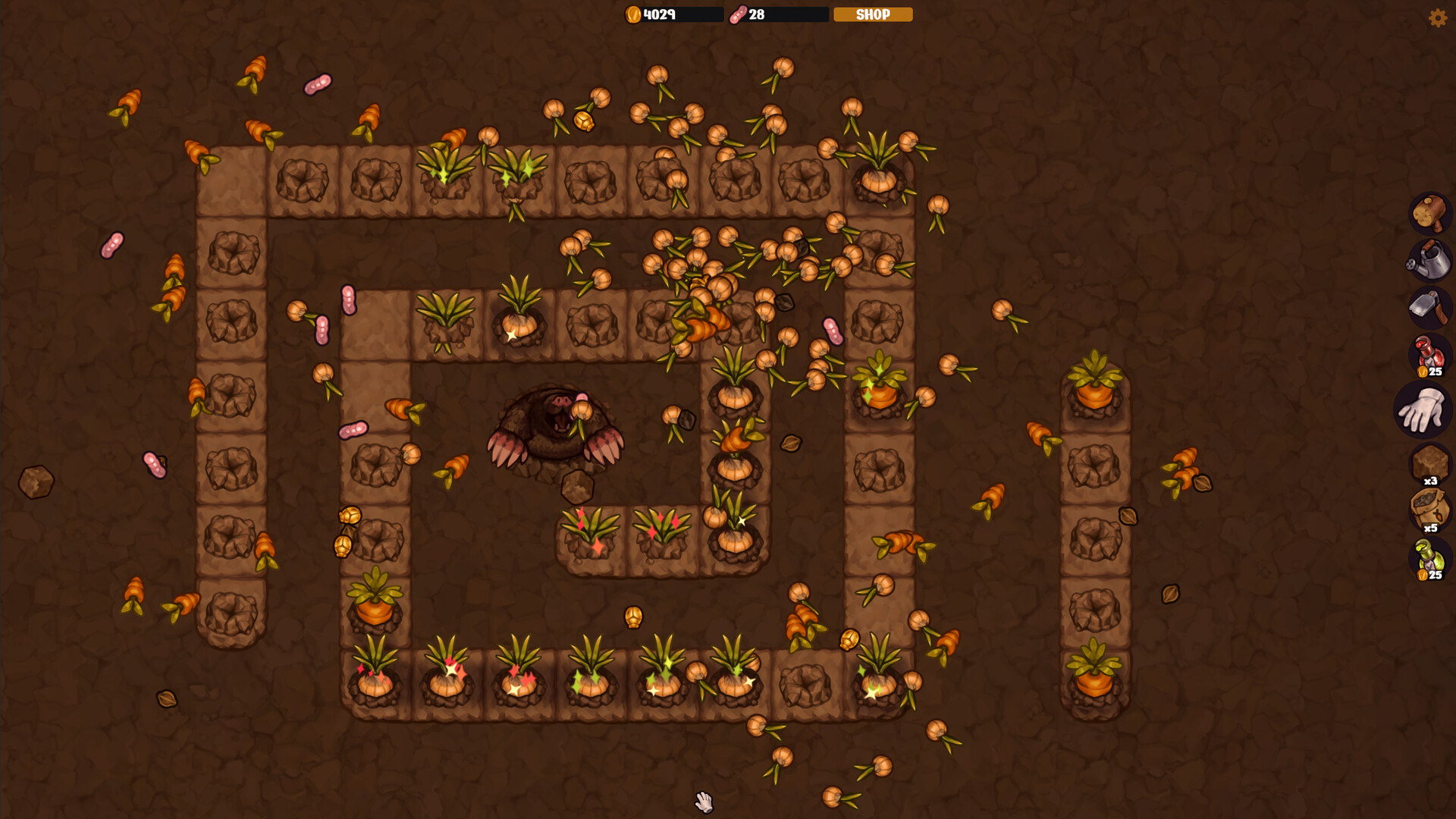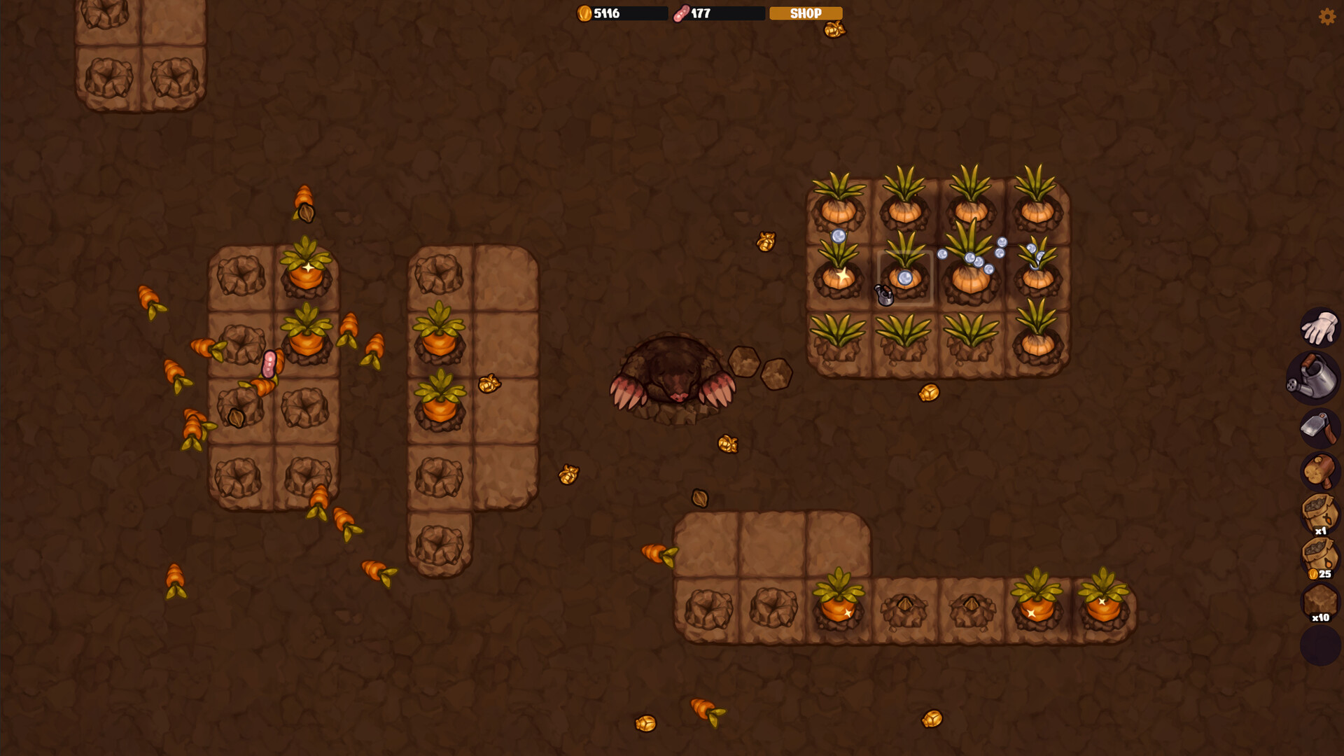 Grow vegetables to appease a mysterious mole. Invest your earnings into tool upgrades, vegetable masteries and expanding your farm.