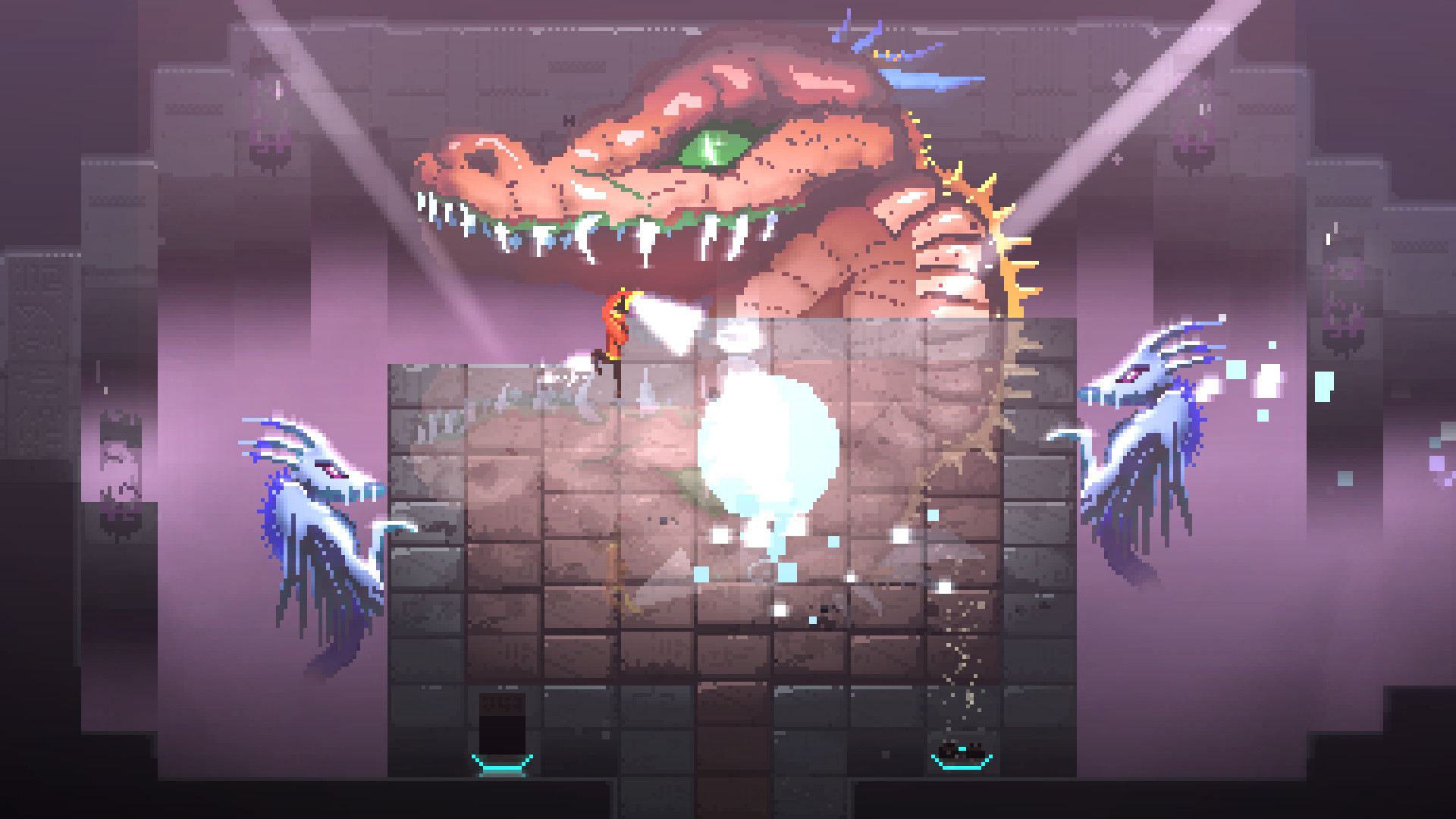 Some items Roq discovers can be combined to create distinct artifacts. Find a blink orb and a fire cube? Take these to the droidsmith aboard Songbringer to craft a fire orb enabling Roq to teleport forward a few steps while turning into a fireball.