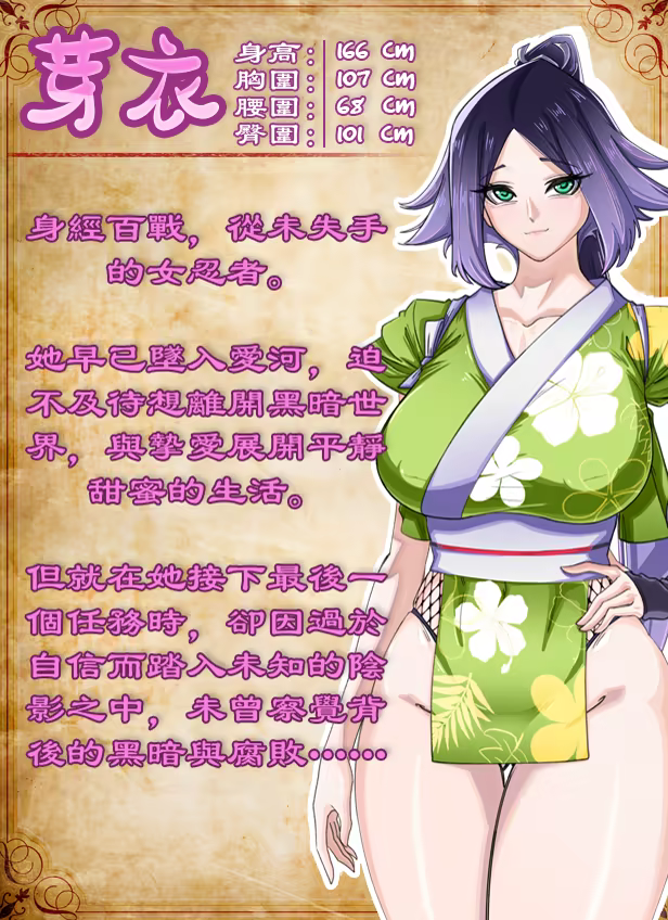 身手不凡的女忍「芽衣」原本即將迎來夢想中的平靜婚姻生活。