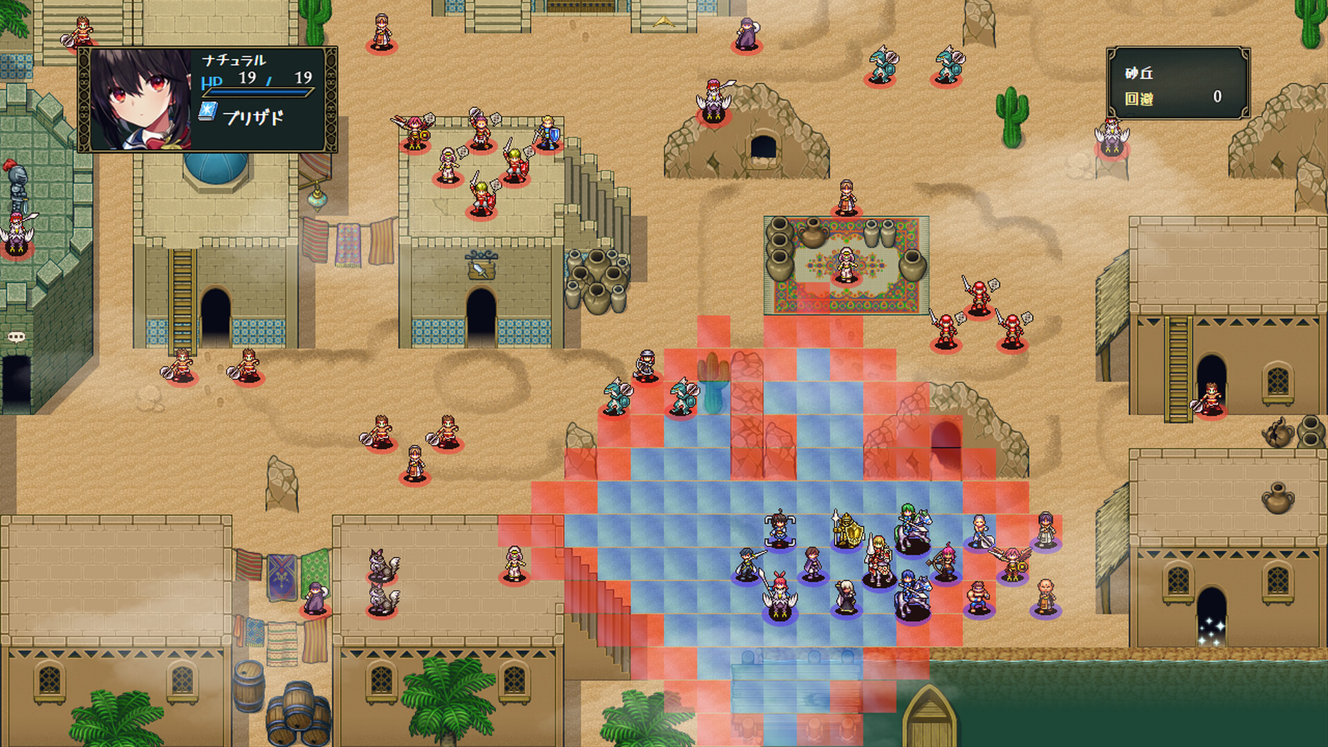 This is a turn-based simulation RPG. It consists of three parts: a strategy part in which you fight by moving many frames, an RPG part in which you explore freely like in a normal RPG, and a base part in which you interact with your friends.