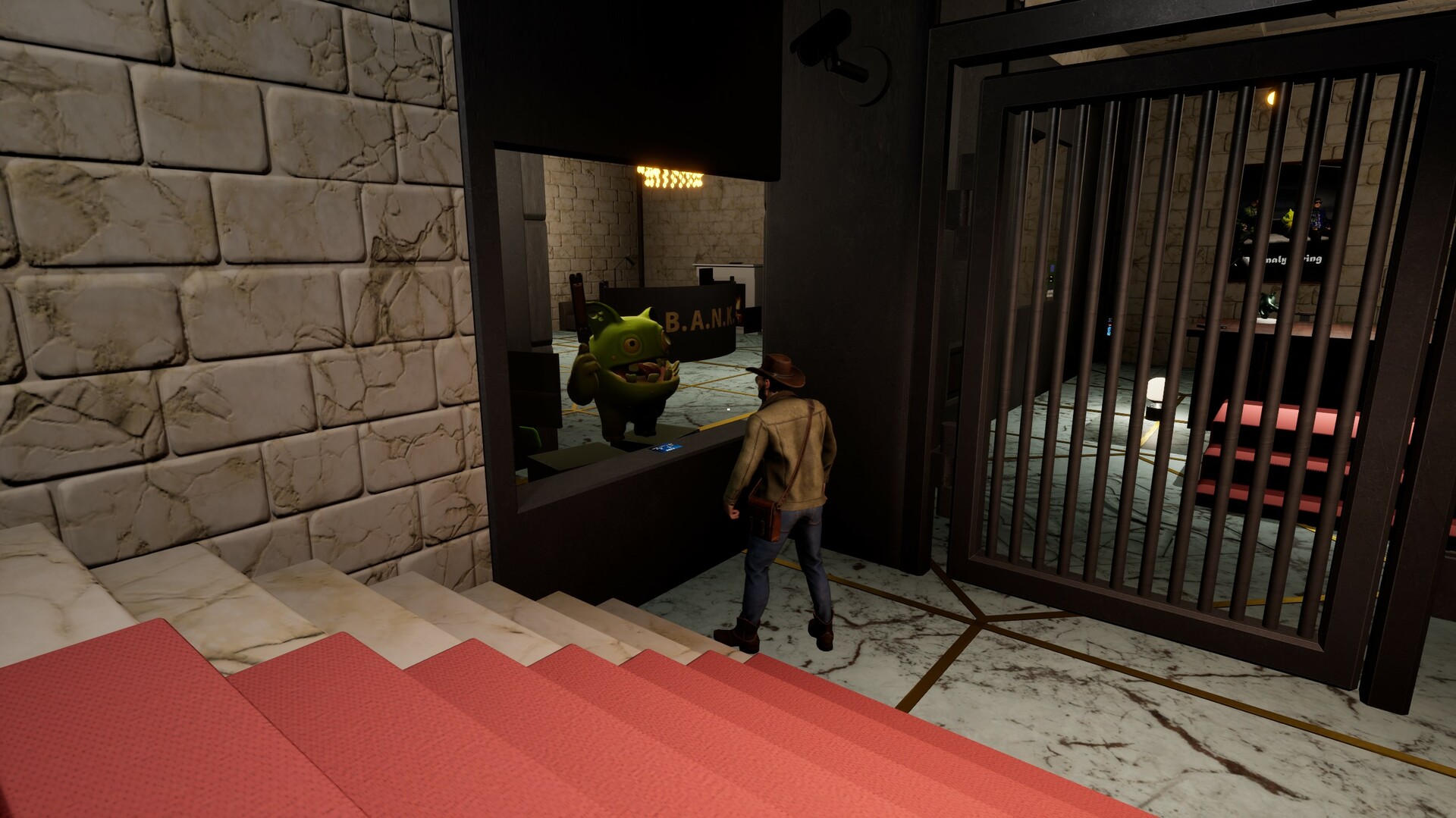 Congratulations on getting a job at B.A.N.K.! Whether alone or with a friend, serve customers and uphold B.A.N.K's reputation. Experience both hilarious and creepy vibes. Unusual and funny characters are already waiting for you!