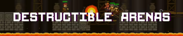 On top of that, stages are destructible, making individual bricks break and platform structures collapse by the weapon hits, projectiles, and explosions.