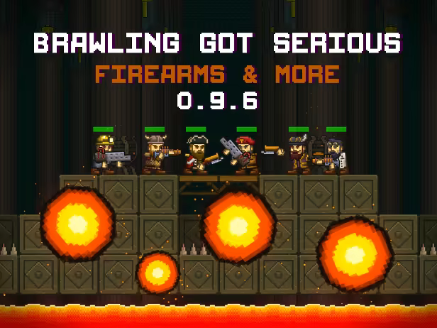 Dwarven Brawl Bros is a local 2 to 6 player 2D fighting (brawling) game with a retroish feel. Play as a dwarf and kill your bros! Fast-paced brawling in all-vs-all and team settings with 31 weapons, 38 stages, 26 game modes!
