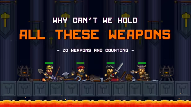 Dwarven Brawl Bros is a brawler that doesn't limit your gameplay to class spesific skills or weapons. All the characters can use all the weapons and you can change your style and arsenal mid-fight: each dwarf can carry up to three weapons, replacable on-the-fly. The brawling is made non-restricting and insanely fun!