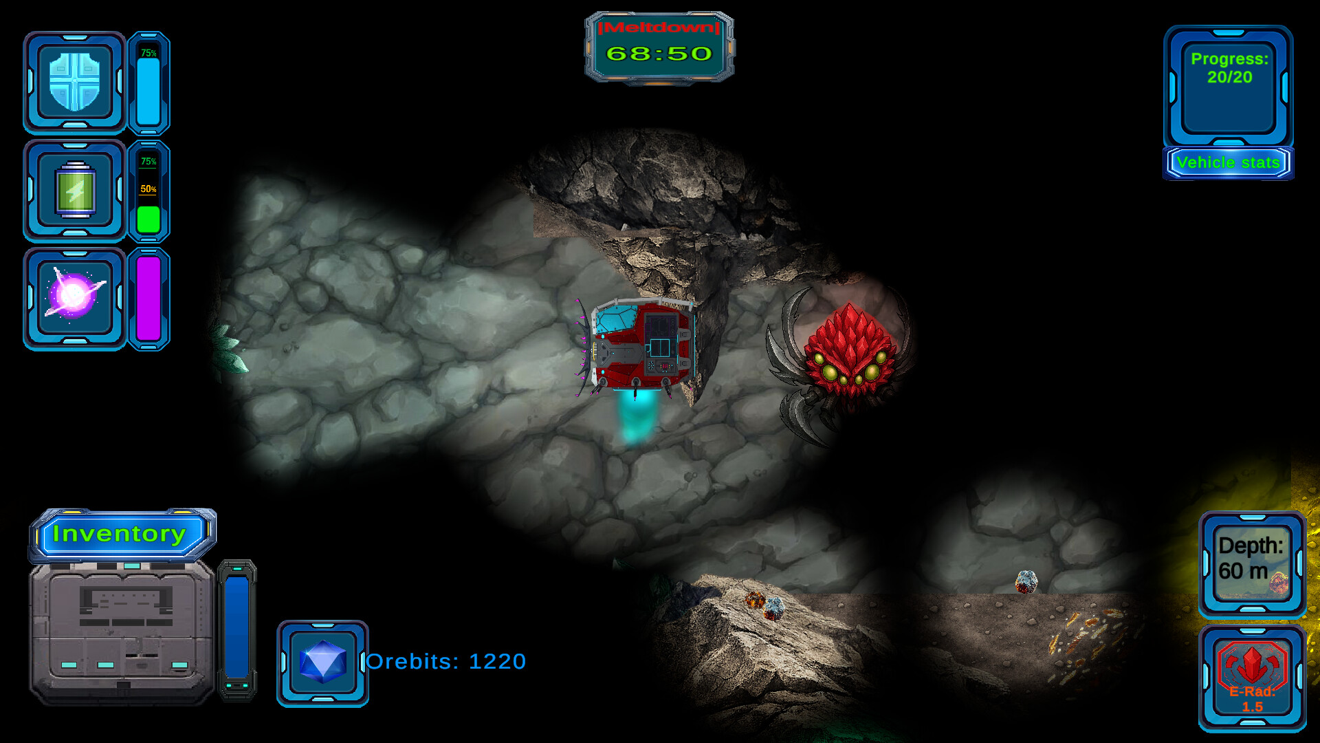 • Resource Gathering & Trading: Extract valuable ores and trade them at underground vendors for credits to purchase upgrades, fuel, and repair parts.