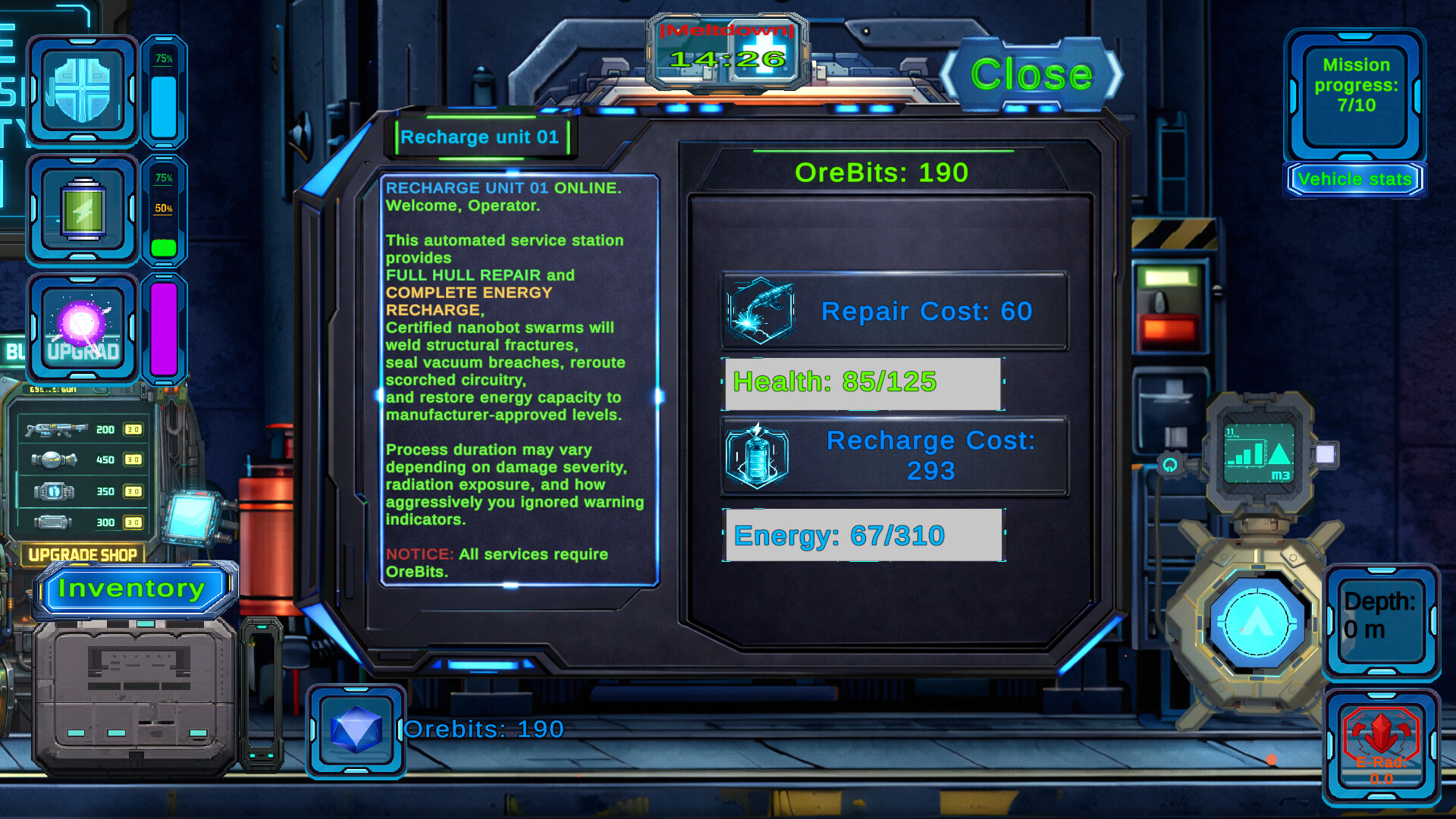 • Resource Gathering & Trading: Extract valuable ores and trade them at underground vendors for credits to purchase upgrades, fuel, and repair parts.
