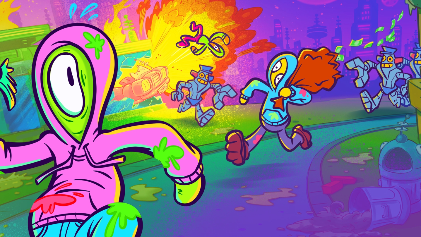 You and up to 3 friends GO ON A RUN of crash-landing into Shopping Malls, SMASHING & GRABBING LOOT, Avoiding Security, and trying not to get KILLED by Gnarly Law Enforcement.