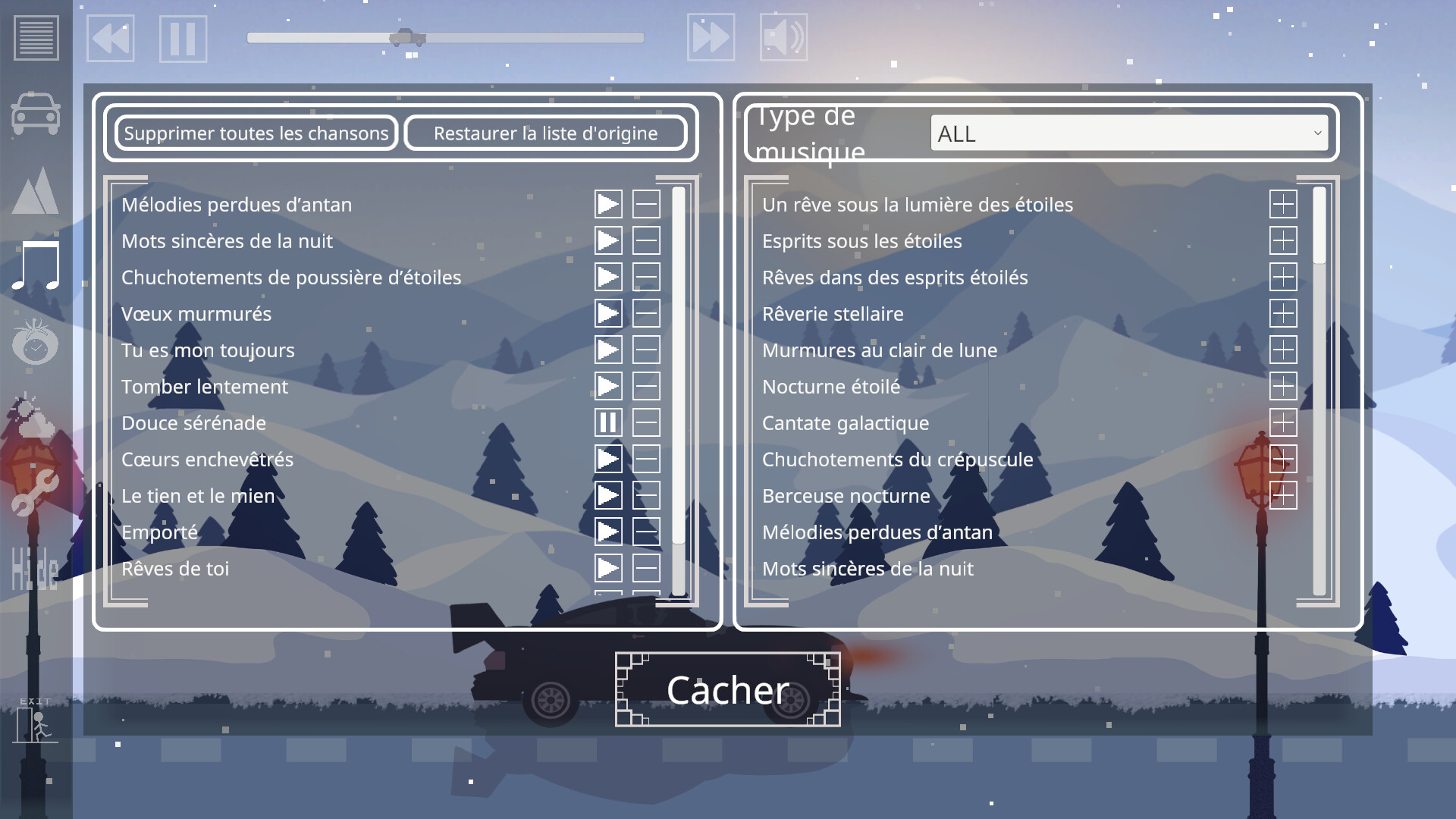 Dans la version complète, vous pourrez également choisir la météo en fonction de votre humeur. Nous proposons des options de temps ensoleillé, neigeux et pluvieux (cette fonctionnalité n'est pas disponible dans la version DEMO).