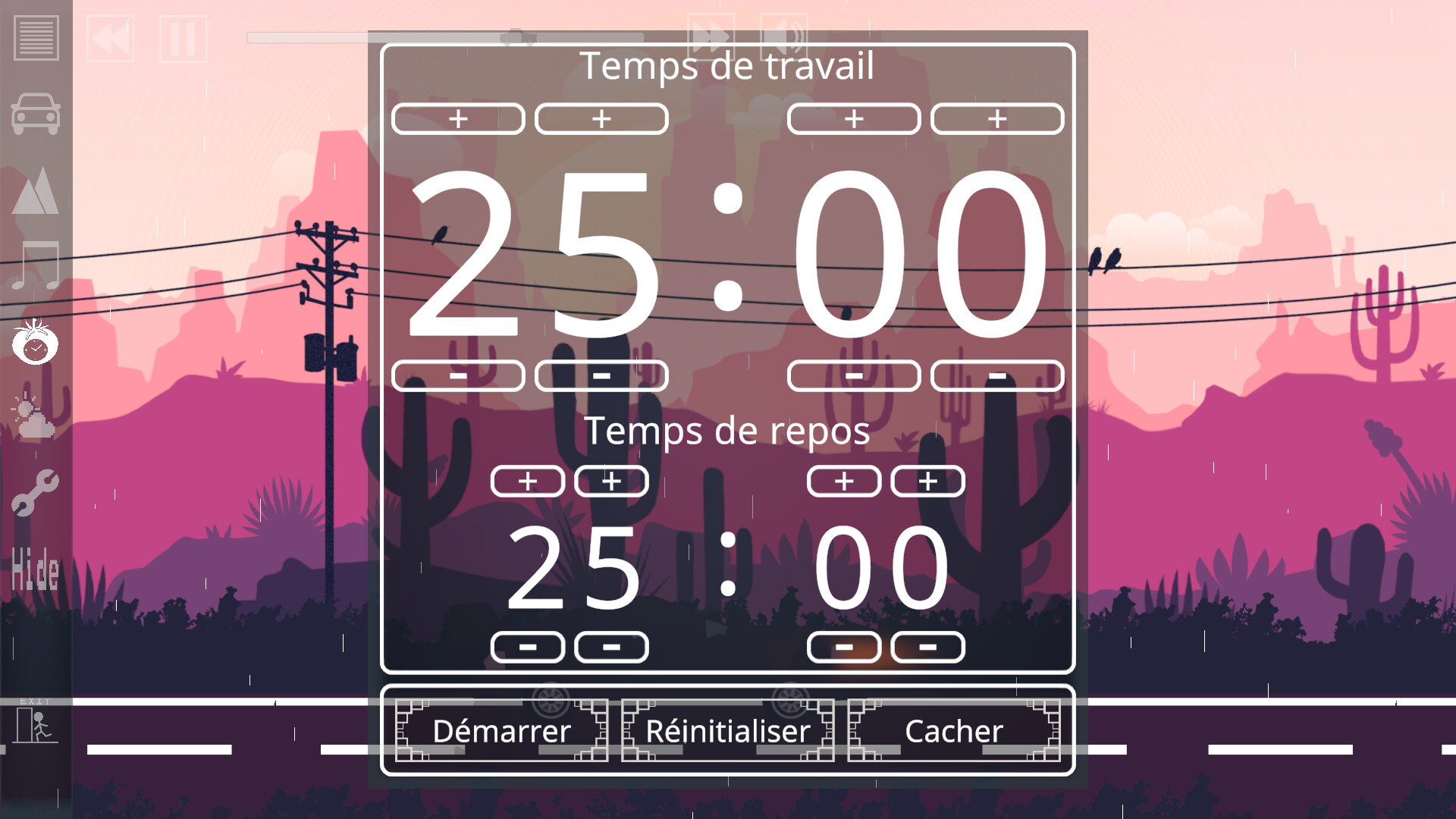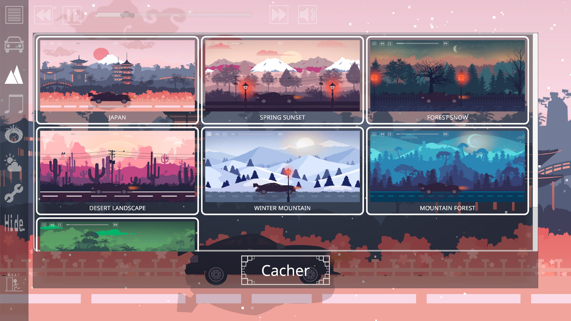 • Drive and Unwind : Scène 2D avec effet de parallaxe – Un outil visuel apaisant avec des décors en défilement parallaxe pour vous accompagner pendant que vous travaillez ou étudiez.