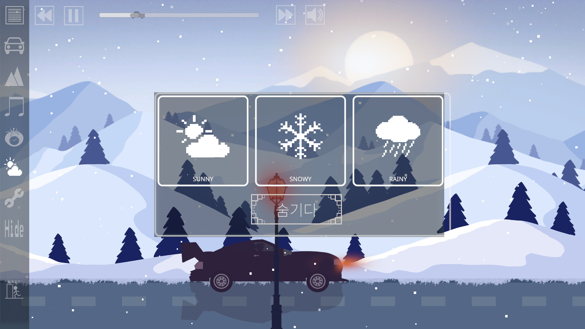 정식 버전에서는 기분에 맞는 날씨를 선택할 수 있습니다. 맑은 날, 눈, 비 날씨 옵션을 제공하며 (DEMO 버전에는 이 기능이 없습니다).