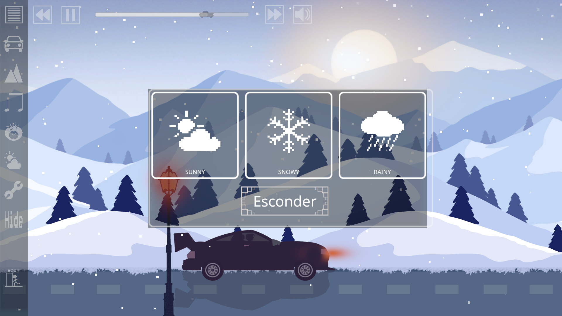 En la versión completa, también podrás elegir el clima según tu estado de ánimo. Ofrecemos opciones de clima soleado, nevado y lluvioso (esta función no está disponible en la versión DEMO).