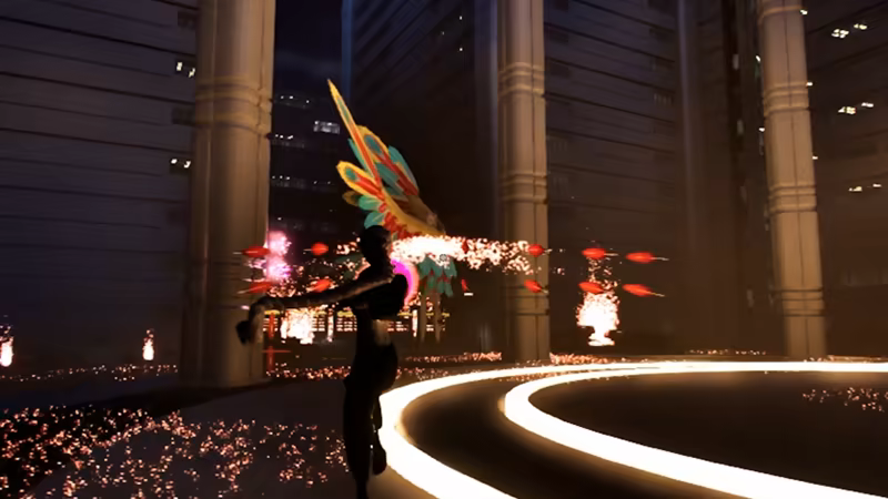 Dual Shadows is a combat-focused action game set in Pulsanh, a neon-drenched city powered by the imprisoned energy of two divine beings: the Phoenix and the Dragon. You play as Linh, a synthetic lifeform forged by the tech conglomerate Harmoni —spliced from fragments of the beasts she’s sent to destroy.