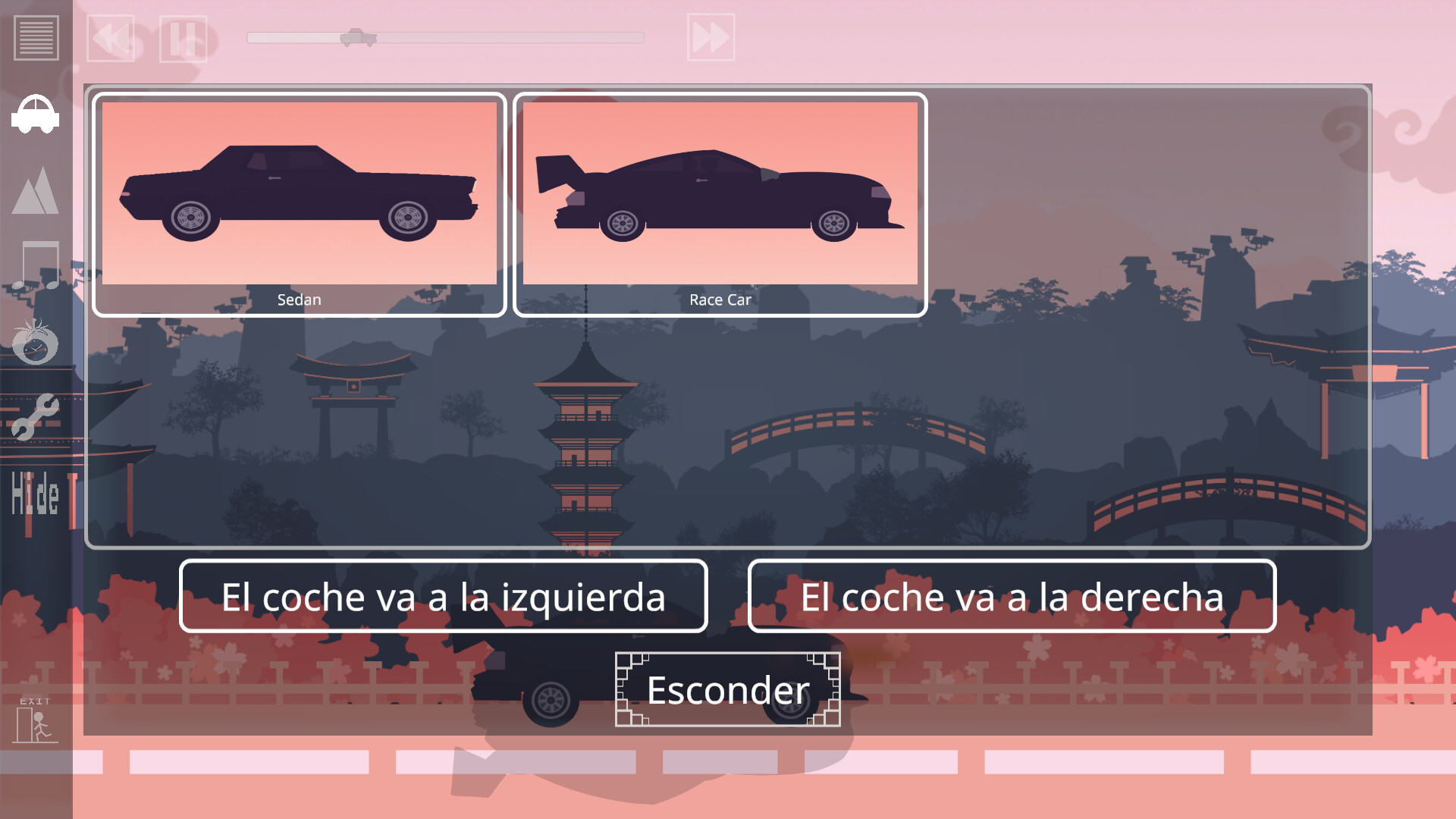 La versión completa ofrecerá cinco modelos de coches (con la posibilidad de añadir más en el futuro) para que elijas (la versión DEMO incluye dos modelos). También podrás controlar la dirección del coche, conduciendo hacia la izquierda o hacia la derecha.
