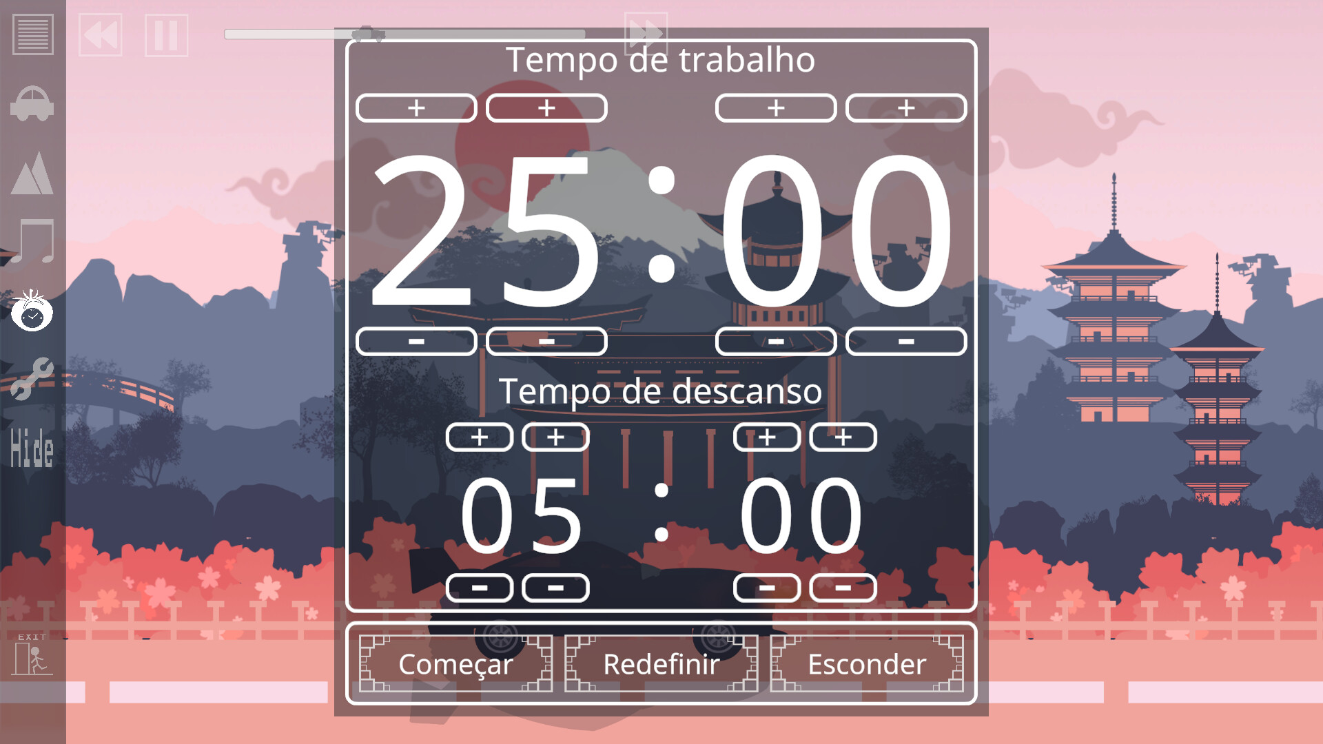 Além disso, para os usuários que utilizam a técnica Pomodoro, oferecemos a função do temporizador Pomodoro, permitindo que você ajuste o tempo de trabalho e descanso.